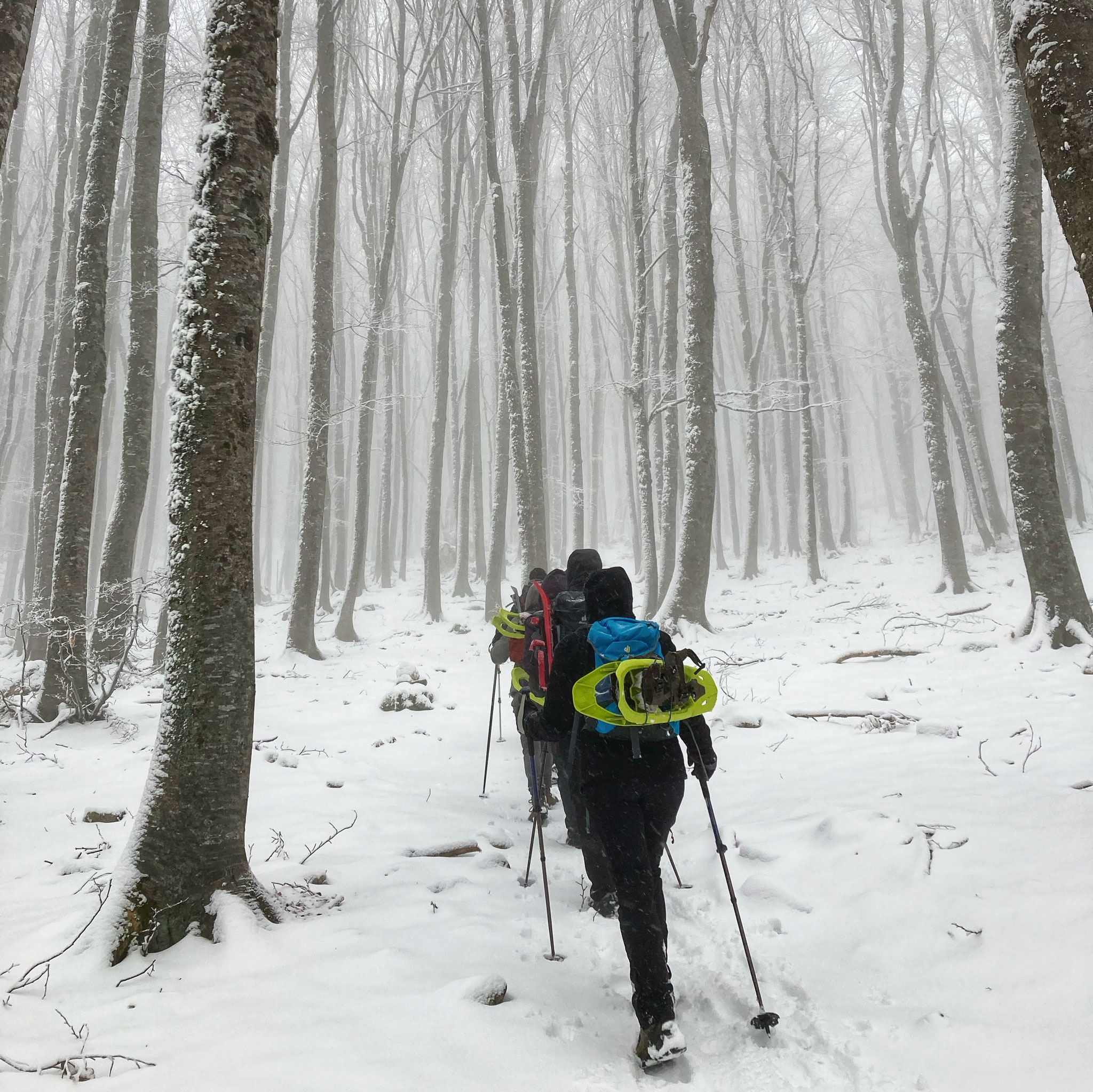 Se cerchi il silenzio vero e vuoi allontanarti dalla folla, questa è l'escursione giusta. Partiremo da Passo San Leonardo, il valico storico che separa due giganti di pietra: la Maiella e il Morrone. Cammineremo su praterie aperte dove lo sguardo spazia all'infinito, per poi entrare come in una cattedrale naturale: la meravigliosa faggeta di Lama Bianca. L'atmosfera del bosco d'inverno è magica, ovattata e ferma nel tempo. La nostra meta è l'Addiaccio della Chiesa, un balcone naturale a oltre 1500 metri di quota, letteralmente ai piedi della Montagna Madre, con una vista sensazionale che abbraccia gran parte dell'Abruzzo.